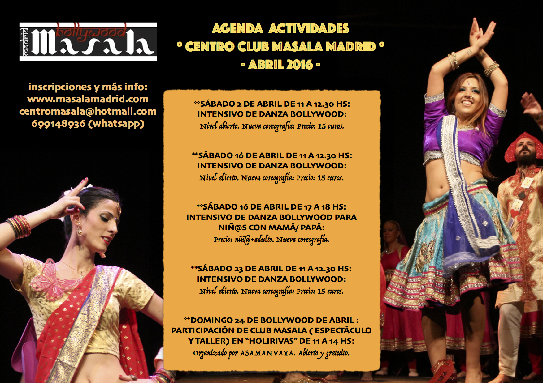Ya tenemos la agenda completa de actividades en Abril,: nuevos intensivos de Bollywood,