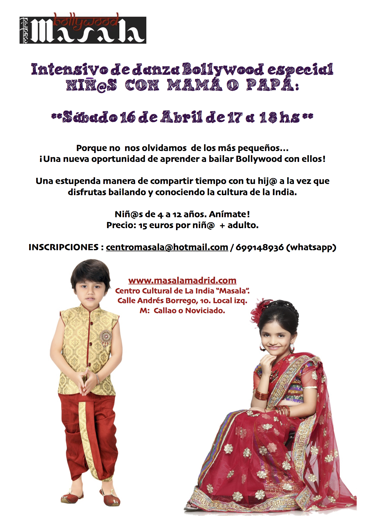 **INTENSIVO DE DANZA BOLLYWOOD PARA NIÑOS CON MAMÁ Ó PAPÁ .